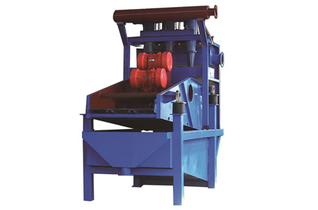 該篩主要由篩箱、激振器、支撐系統(tǒng)與電機(jī)組成。篩機(jī)整體水平安裝,篩網(wǎng)呈負(fù)角度(-10°)安裝,以保證強(qiáng)制脫水效果